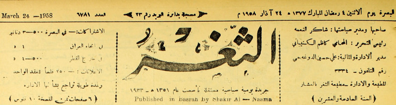صاحبها ورئيس تحريرها : شاكر النعمة.