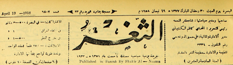 صاحبها ورئيس تحريرها : شاكر النعمة.