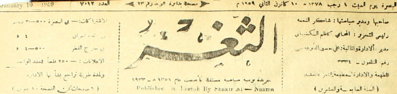 جريدة يومية سياسية عامة = AL-Thaghr : A Daily Newspaper