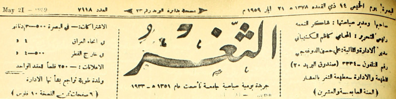 جريدة يومية سياسية عامة = AL-Thaghr : A Daily Newspaper
