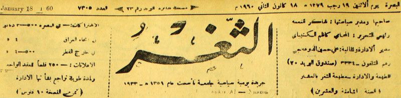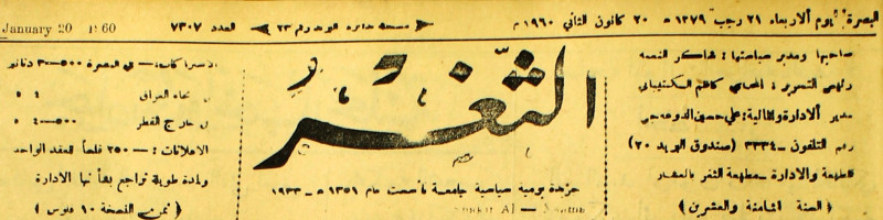جريدة يومية سياسية عامة = AL-Thaghr : A Daily Newspaper
