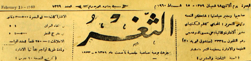 جريدة يومية سياسية عامة = AL-Thaghr : A Daily Newspaper