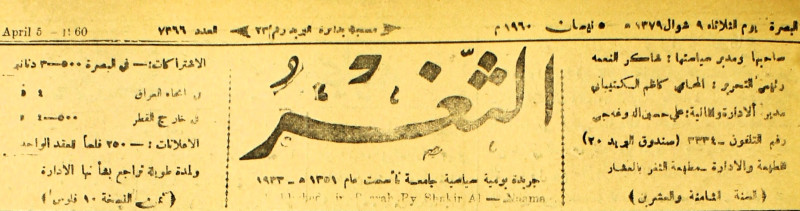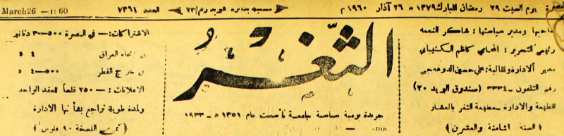 جريدة يومية سياسية عامة = AL-Thaghr : A Daily Newspaper