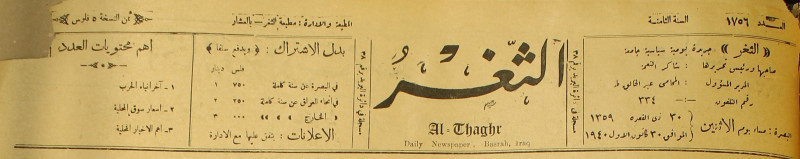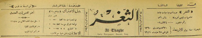 جريدة يومية سياسية عامة = AL-Thaghr : A Daily Newspaper