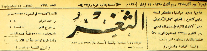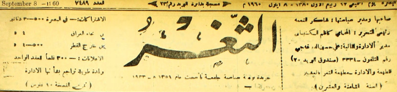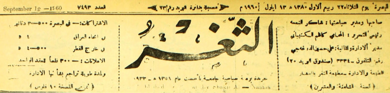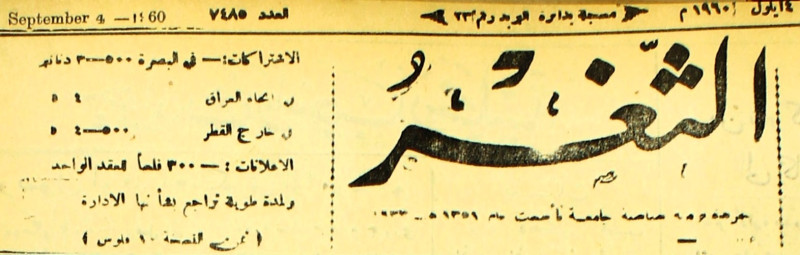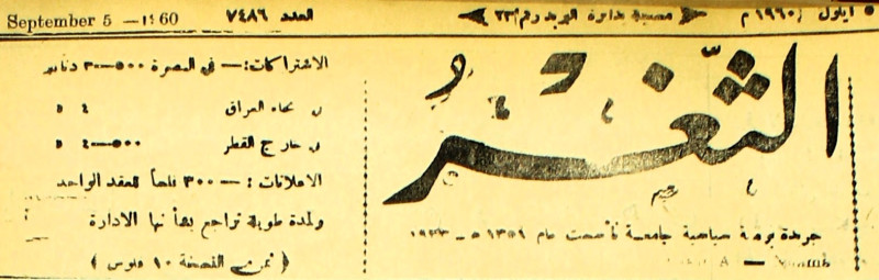 جريدة يومية سياسية عامة = AL-Thaghr : A Daily Newspaper