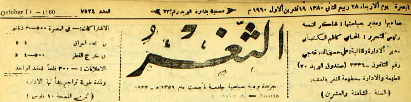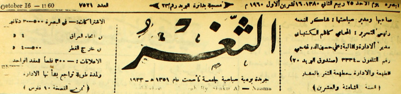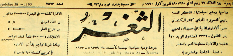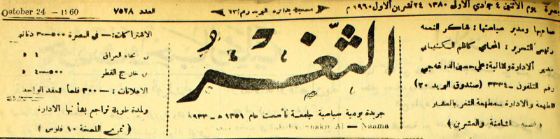 جريدة يومية سياسية عامة = AL-Thaghr : A Daily Newspaper