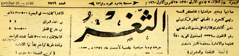 صاحبها ورئيس تحريرها : شاكر النعمة.