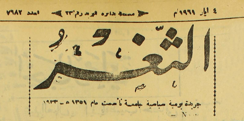 جريدة يومية سياسية عامة = AL-Thaghr : A Daily Newspaper