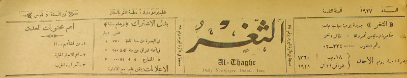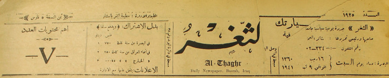 جريدة يومية سياسية عامة = AL-Thaghr : A Daily Newspaper