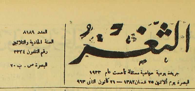 جريدة يومية سياسية عامة = AL-Thaghr : A Daily Newspaper