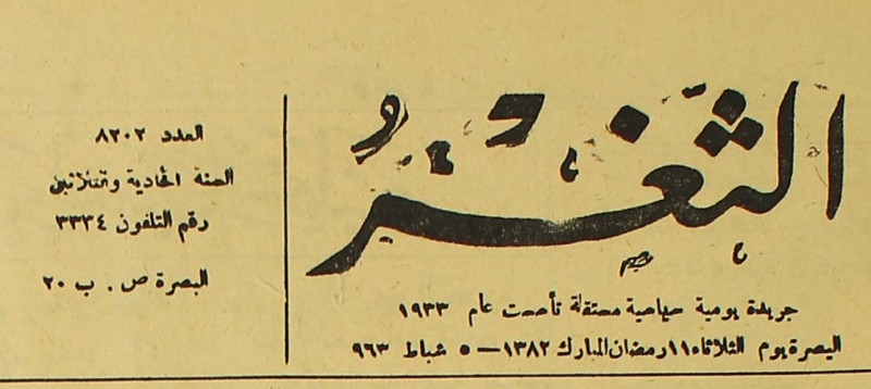جريدة يومية سياسية عامة = AL-Thaghr : A Daily Newspaper