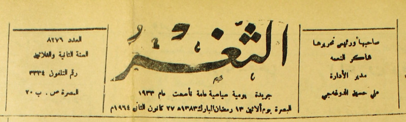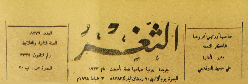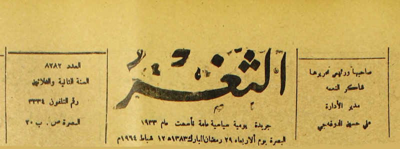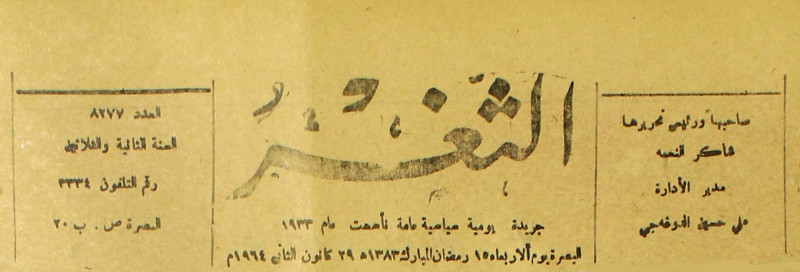 جريدة يومية سياسية عامة = AL-Thaghr : A Daily Newspaper