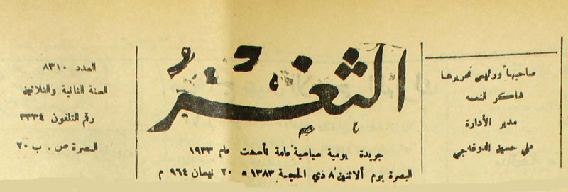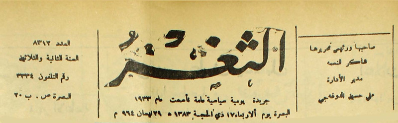جريدة يومية سياسية عامة = AL-Thaghr : A Daily Newspaper