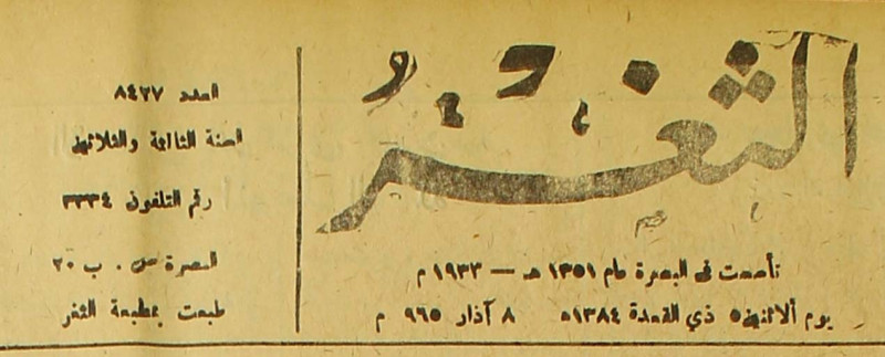 جريدة يومية سياسية عامة = AL-Thaghr : A Daily Newspaper
