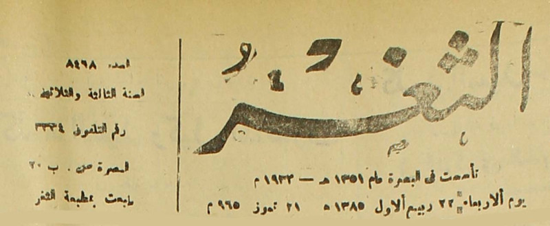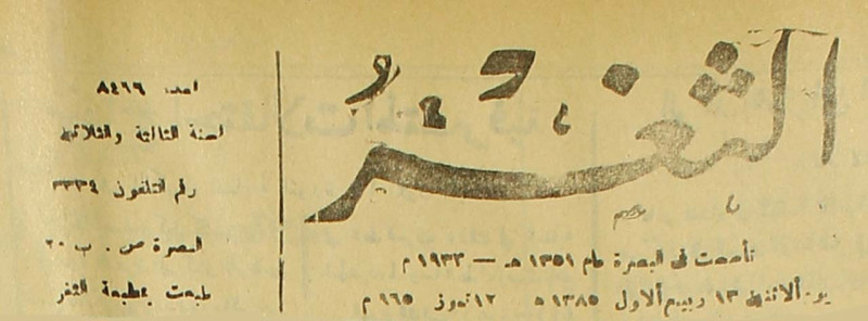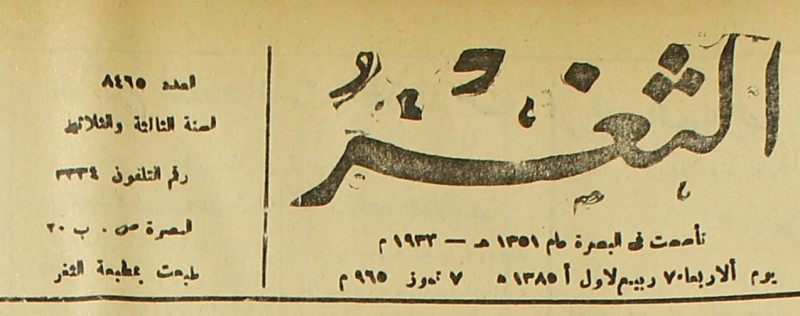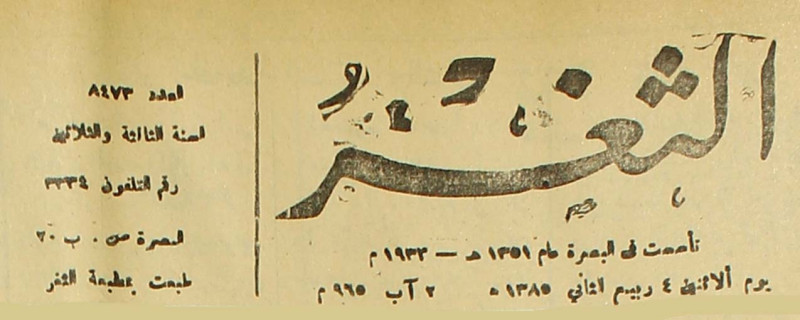 جريدة يومية سياسية عامة = AL-Thaghr : A Daily Newspaper