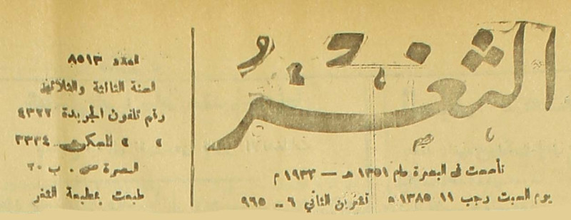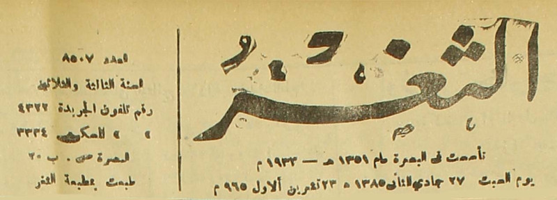 جريدة يومية سياسية عامة = AL-Thaghr : A Daily Newspaper