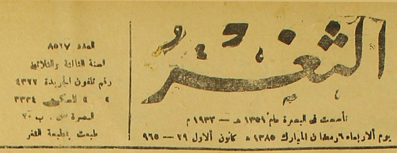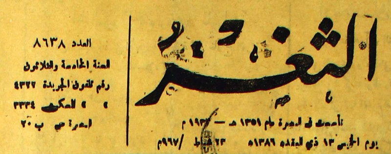 جريدة يومية سياسية عامة = AL-Thaghr : A Daily Newspaper