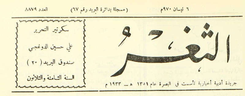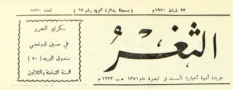جريدة يومية سياسية عامة = AL-Thaghr : A Daily Newspaper