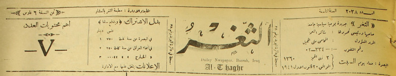 جريدة يومية سياسية عامة = AL-Thaghr : A Daily Newspaper