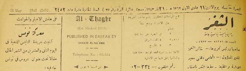 جريدة يومية سياسية عامة = AL-Thaghr : A Daily Newspaper