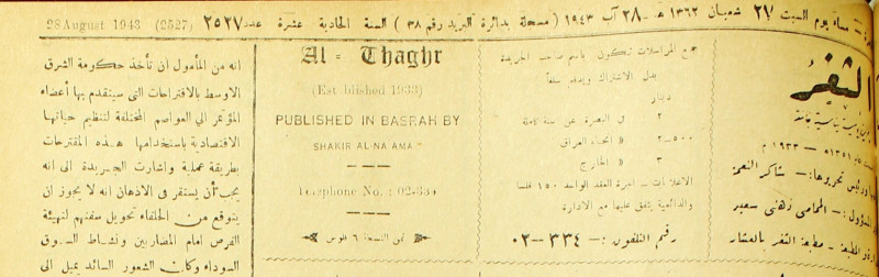 جريدة يومية سياسية عامة = AL-Thaghr : A Daily Newspaper