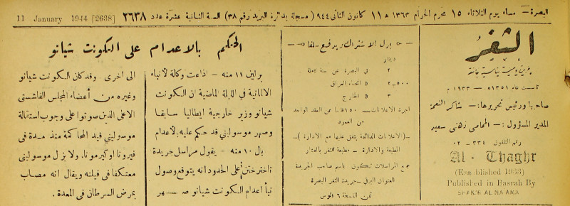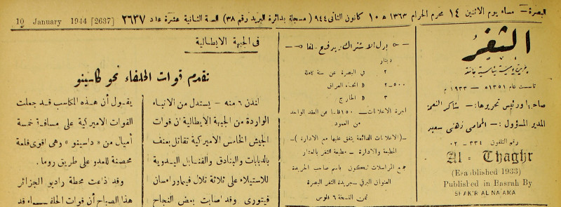 جريدة يومية سياسية عامة = AL-Thaghr : A Daily Newspaper