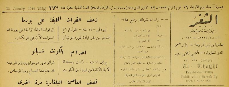 جريدة يومية سياسية عامة = AL-Thaghr : A Daily Newspaper