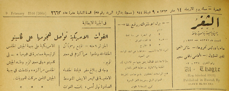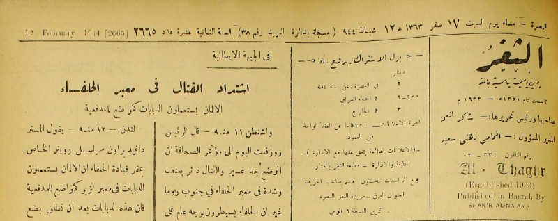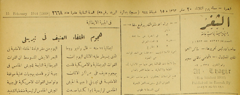 جريدة يومية سياسية عامة = AL-Thaghr : A Daily Newspaper
