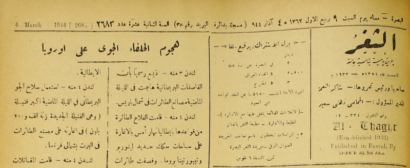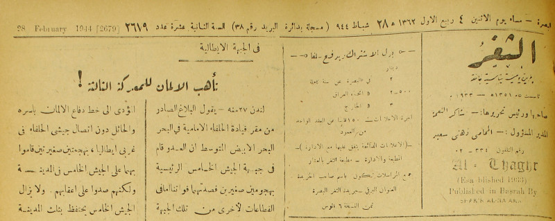 جريدة يومية سياسية عامة = AL-Thaghr : A Daily Newspaper