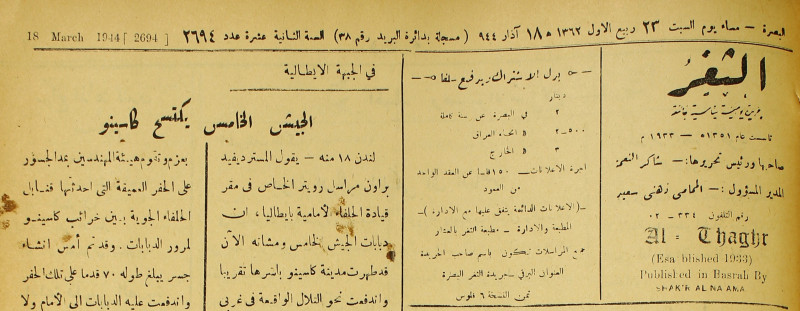 جريدة يومية سياسية عامة = AL-Thaghr : A Daily Newspaper