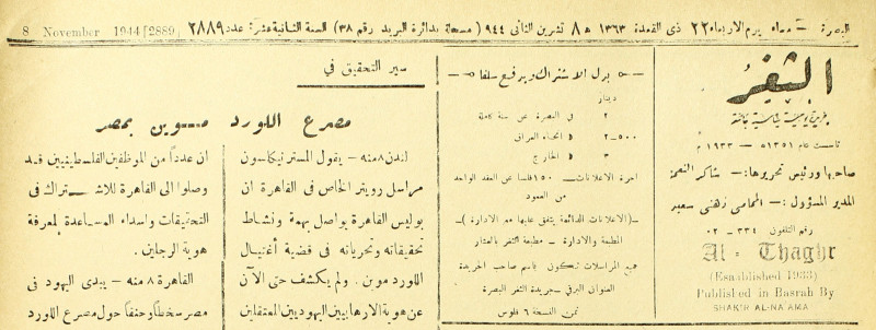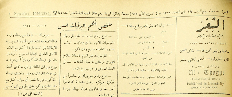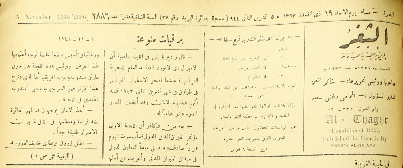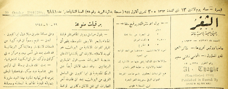 جريدة يومية سياسية عامة = AL-Thaghr : A Daily Newspaper