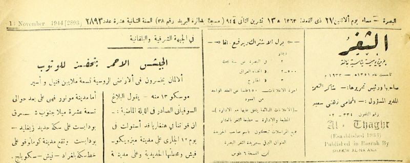 جريدة يومية سياسية عامة = AL-Thaghr : A Daily Newspaper