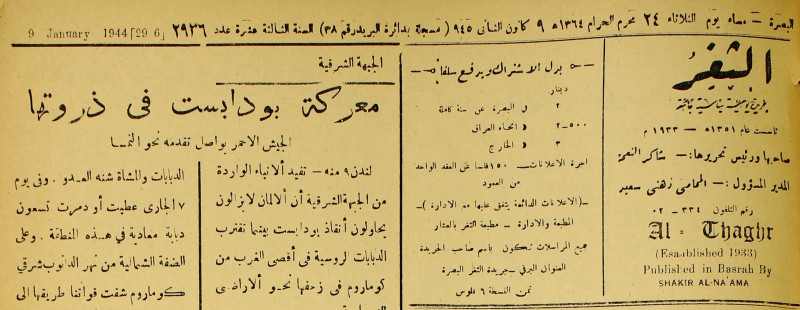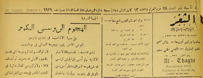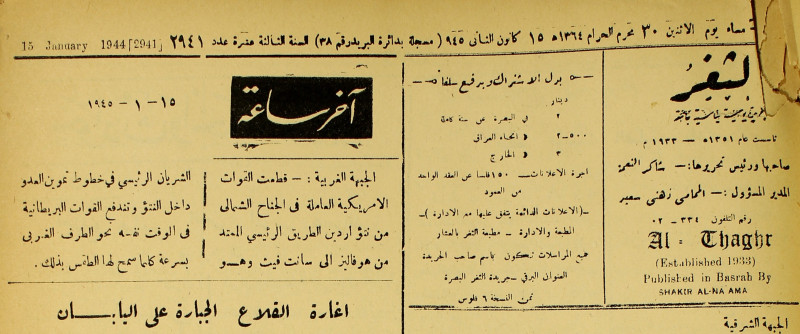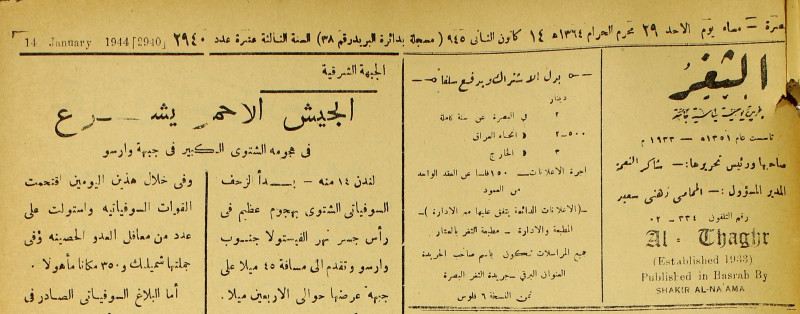 جريدة يومية سياسية عامة = AL-Thaghr : A Daily Newspaper
