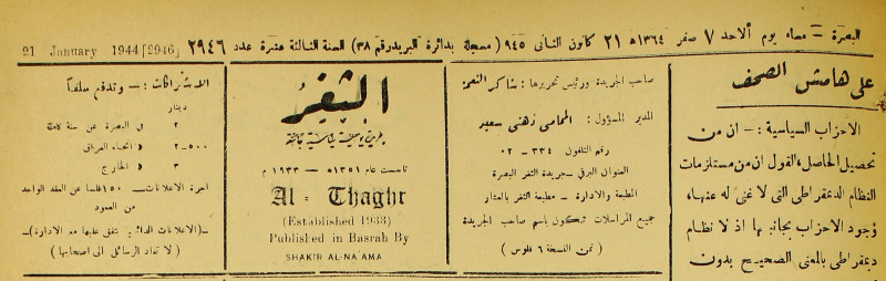 جريدة يومية سياسية عامة = AL-Thaghr : A Daily Newspaper