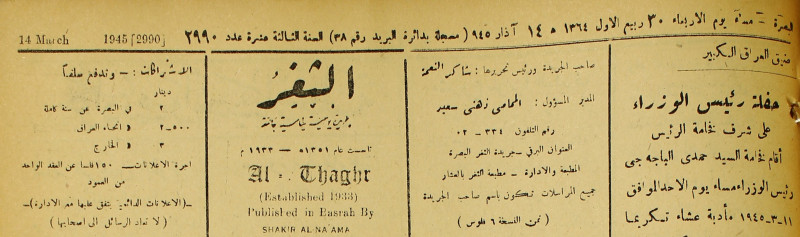 جريدة يومية سياسية عامة = AL-Thaghr : A Daily Newspaper