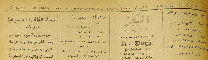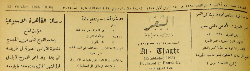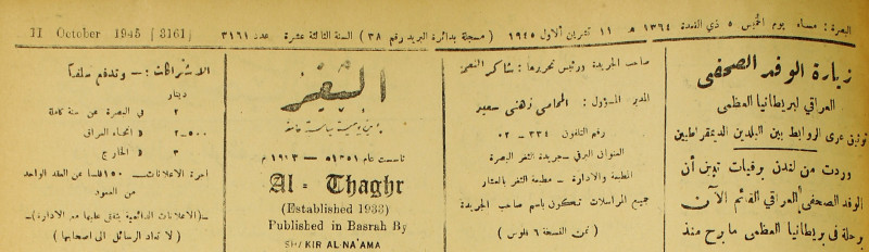 جريدة يومية سياسية عامة = AL-Thaghr : A Daily Newspaper