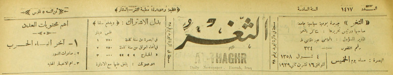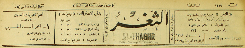 جريدة يومية سياسية عامة = AL-Thaghr : A Daily Newspaper