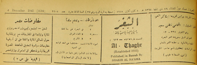 جريدة يومية سياسية عامة = AL-Thaghr : A Daily Newspaper