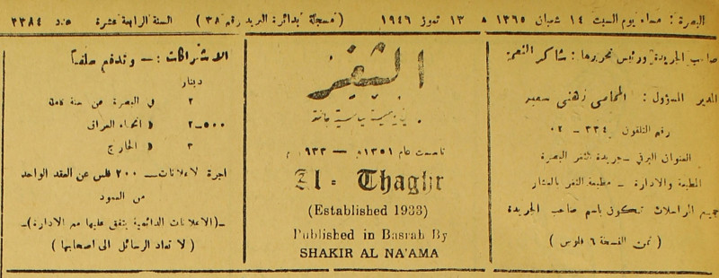 جريدة يومية سياسية عامة = AL-Thaghr : A Daily Newspaper