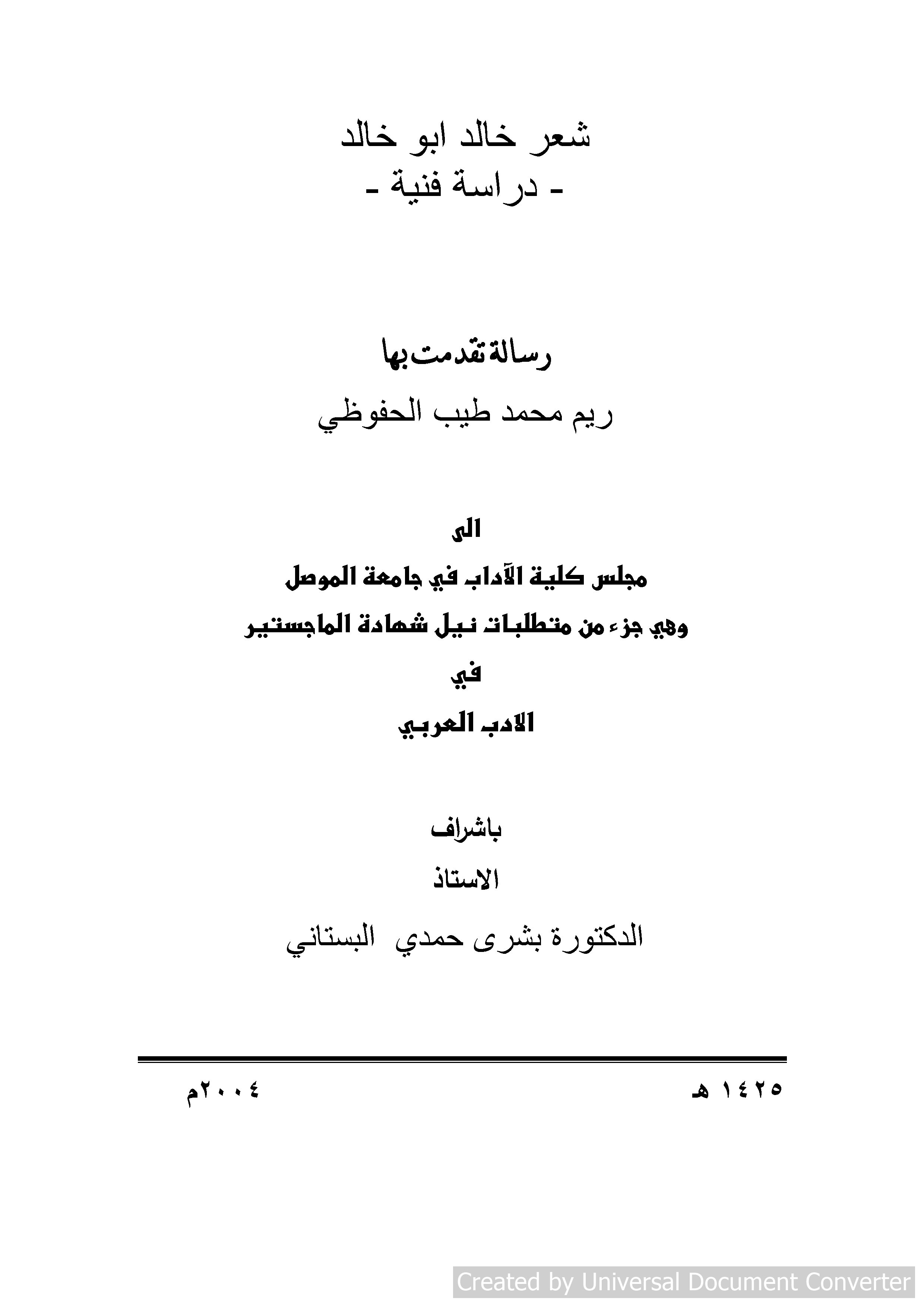 $aجامعة الموصل (العراق). $bكلية الآداب. $bقسم اللغة العربية $eالجهة المانحة للدرجة.