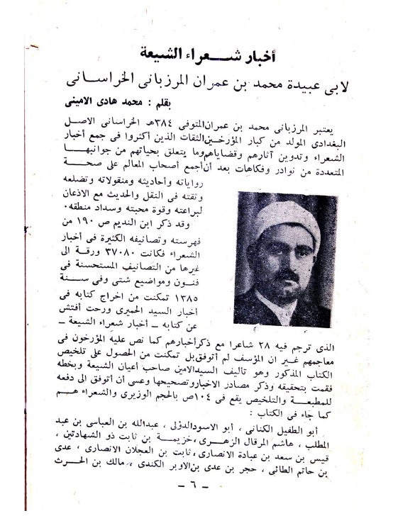 اخبار شعراء الشيعة لابي عبيدة محمد بن عمران المرزباني الخراساني /
