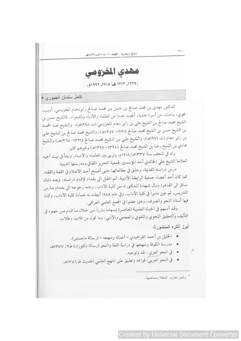 مهدي المخزومي (1337- 1313هـ / 1918- 1993 م) /