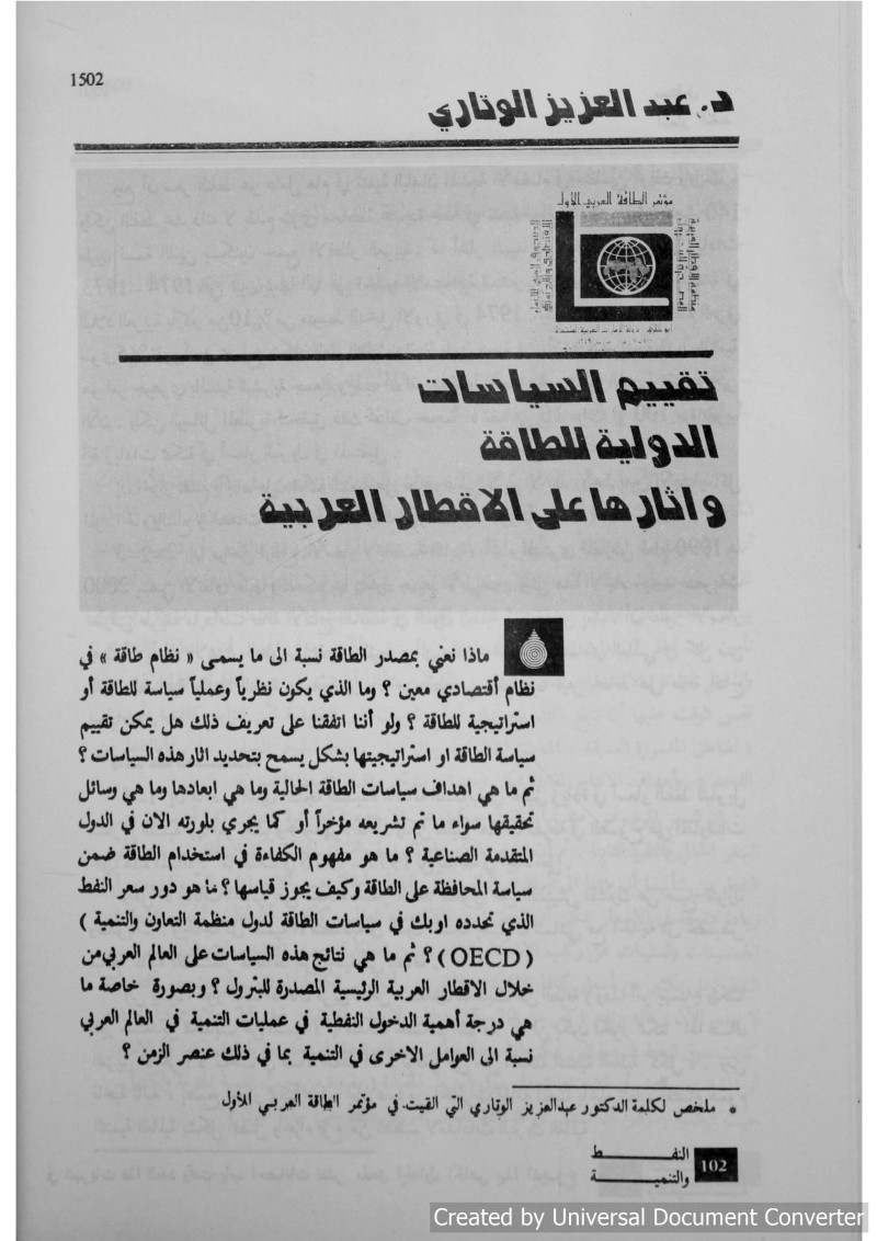تقييم السياسات الدولية للطاقة واثارها على الاقطار العربية /