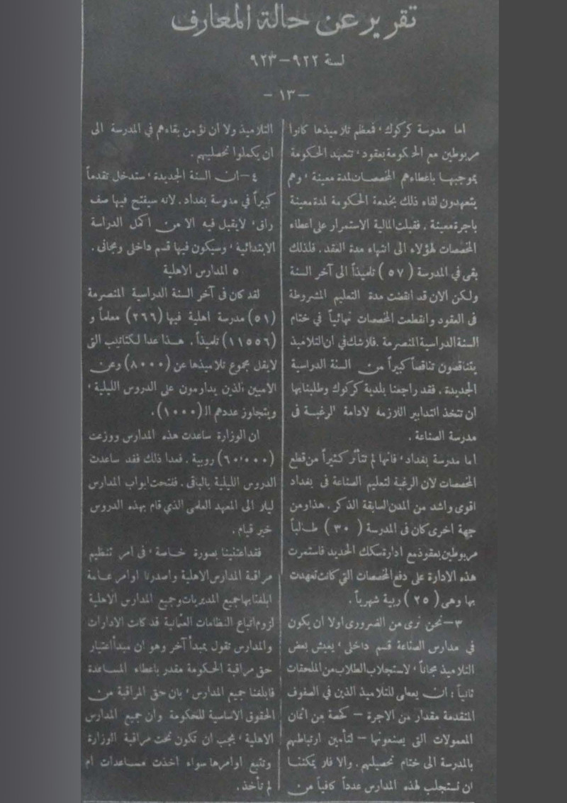تقرير عن حالة المعارف لسنة 922 - 923.