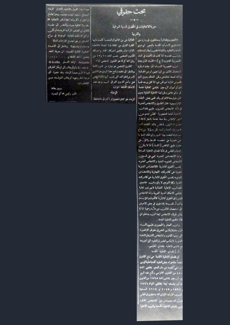 حرية الاتفاقيات في الحقوق المدنية العراقية والغربية.