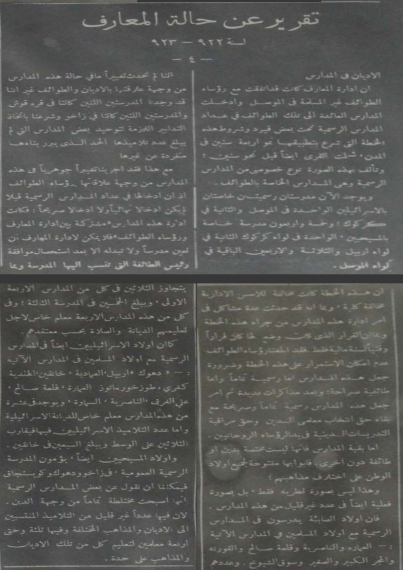 تقرير عن حالة المعارف لسنة 922 - 923.