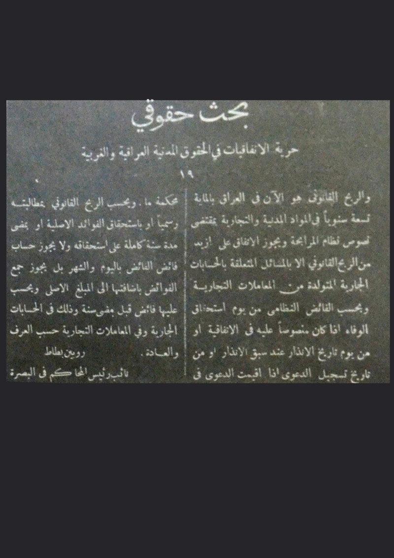 حرية الاتفاقيات في الحقوق المدنية العراقية والغربية.