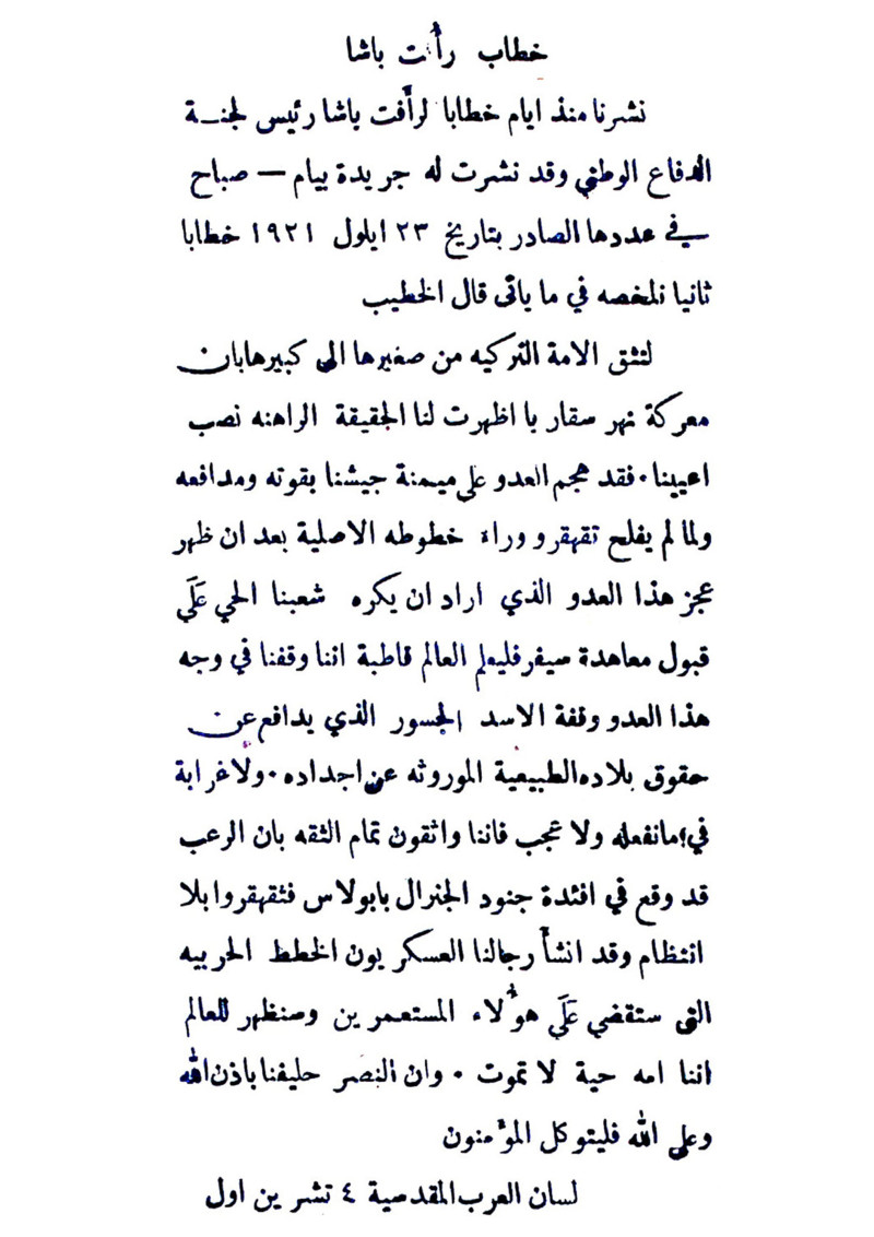 خطاب رأفت باشا.