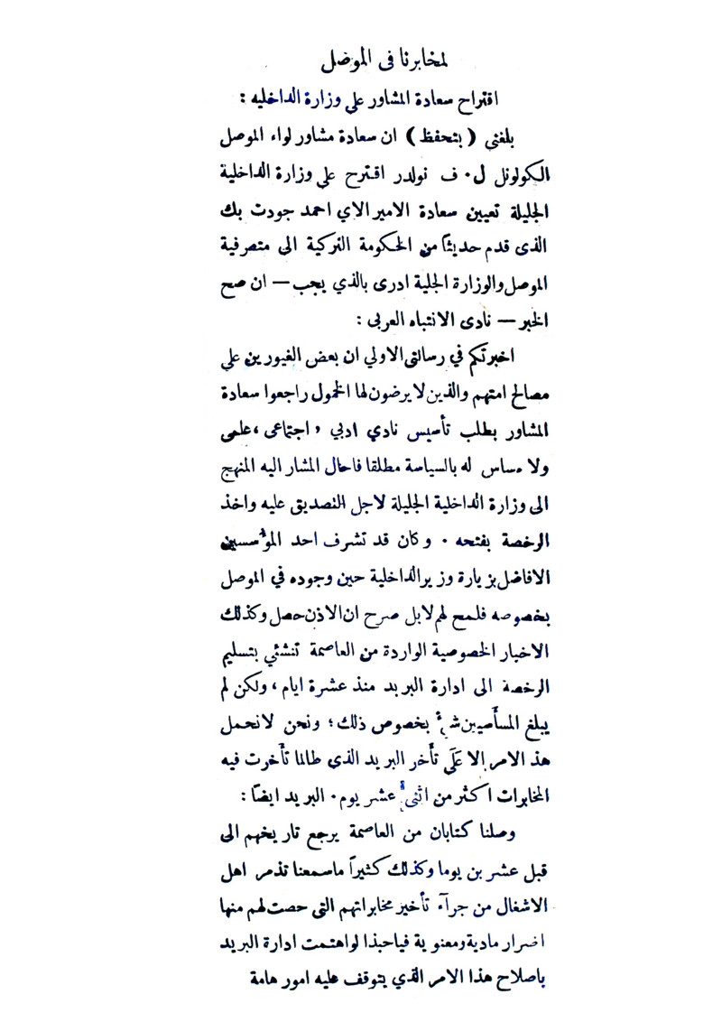 لمخابرنا في الموصل.
