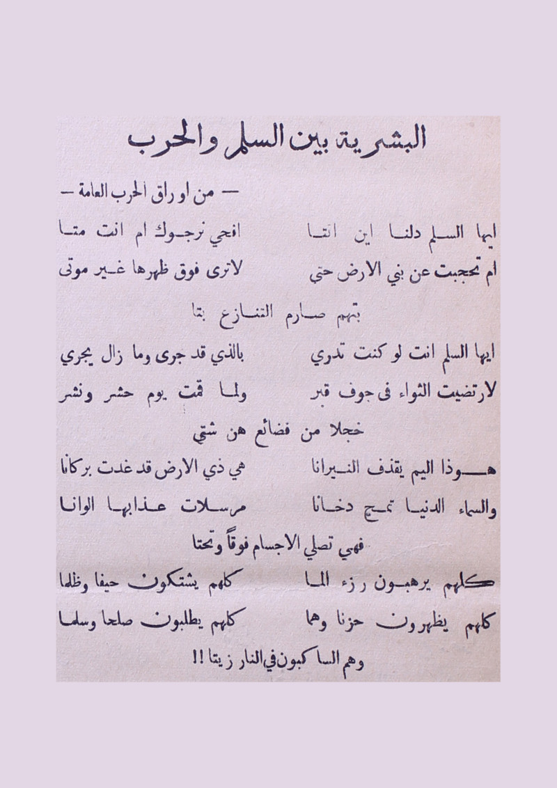 البشرية بين السلم والحرب.